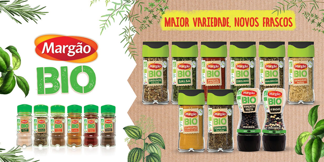 Possuidora de um Saber fazer e de uma exigência que vão da seleção das matérias-primas naturais à sua colocação no mercado, a Margão apresenta a sua nova gama de produtos BIO: 6 produtos rigorosamente selecionados que irão dar sabor aos seus pratos, para se deliciar, todos os dias!
